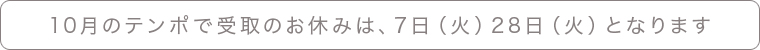 即日配送・店舗受取・デリバリーのお休み / 10月7日・28日